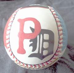Side five, which is the top of the baseball, has my hand painted "PIRATES" in 1909 team colors as the winners.