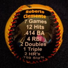 This Baseball Treasures "Roberto Clemente 1971 World Series MVP" Baseball features my original paintings reproduced on this baseball.