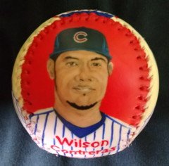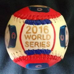 Side five, which is the top of the baseball, has my hand painted "2016 WORLD SERIES" trimmed with Cubs colors.