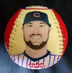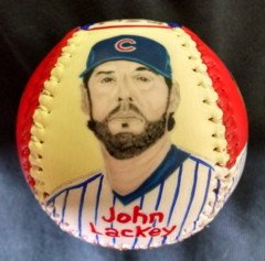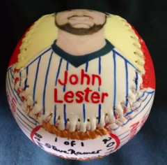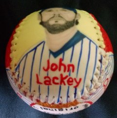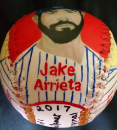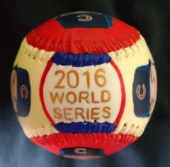 Side five, which is the top of the baseball, has my hand painted "2016 WORLD SERIES" trimmed with Cubs colors.