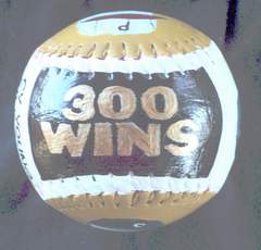 sp;Side five, which is the top of the baseball, has 300 WINS hand painted in black and gold.