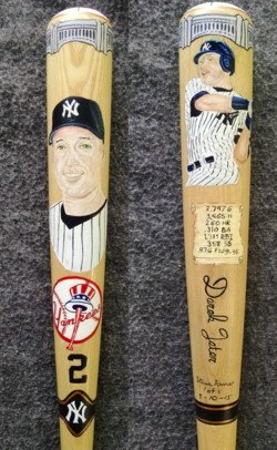 I'd also like to show you my just finished Derek Jeter bat I painted for a customer: I love painting baseball bats but they present some interesting challenges. For example, the surface of the bat is not only round, but it's tapered.