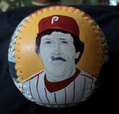 Side one is my close up painting of Hall of Fame third baseman Mike Schmidt. (The light spot on his mustache is just a glare. It's not on the baseball.)
