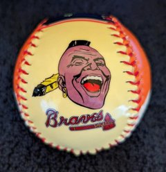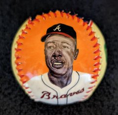 The reverse side of the ball has my painting of Henry Aaron in his 1966 Atlanta Braves uniform. Click here for a closer look.