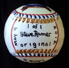 Side six, which is the bottom of the baseball, has my signature along with the date that this Legends Hand Painted Baseball was completed and trimmed with gold. Also you will see "1 of 1". This means that this is number one of only one created. This is a one of a kind piece of art. There will never be another exactly like it.