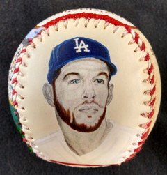 one has my close up painting of Cy Young Award winner Clayton Kershaw who won the N.L. Cy Young Award in 2011, 2013 and 2014.