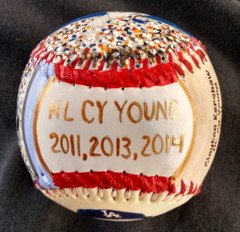 Side five, which is the top of the baseball, has my hand painted "CY YOUNG 2011,2013,2014".