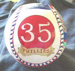 Side four has Cole's hand painted number 35 with "Phillies" painted below.