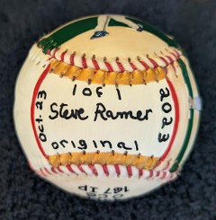the bottom of the ball has my signature and the date this baseball was completed. Also "1 of 1".