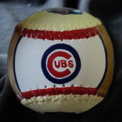 Side five, which is the top of the baseball, has my hand painted Cubs logo.