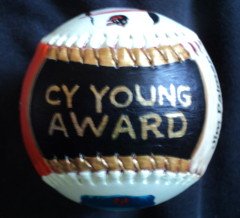 Side five, which is the top of the baseball, has my hand painted "Cy Young Award".
