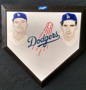 My hand painted portrait of Don Drysdale on the left, my painting of Sandy Koufax on the right.