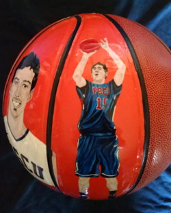 The front of the basketball has my portraits of Danko on the left and Filip on the right. Click here for a closer look.