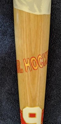 The bottom of the bat has Gordie's number 9 in gold.