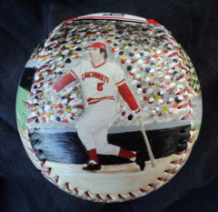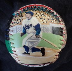 This Legends Hand Painted Hall Of Fame Baseball features four of my original paintings. This Baseball Has Been Sold.