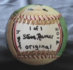 Side six, which is the bottom of the baseball, has my signature along with the date that this Legends Hand Painted Baseball was completed and trimmed with platinum. Also you will see "1 of 1". This means that this is number one of only one created. This is a one of a kind piece of art. There will never be another exactly like it.