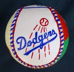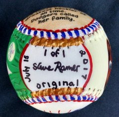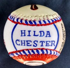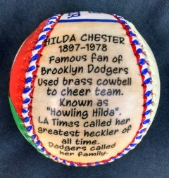 Side five, which is the top of the baseball, has my hand painted "Hilda Chester" in Dodgers colors.