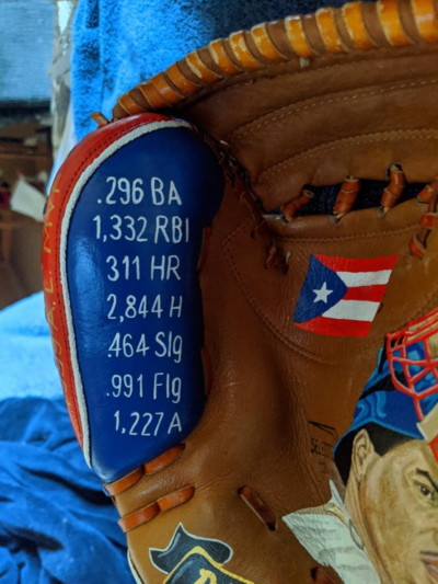 The thumb has some of Rodriguez's lifetime statistics.