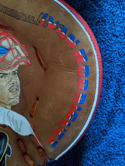 To the right is Ivan Rodriguez's name in red, white and blue.