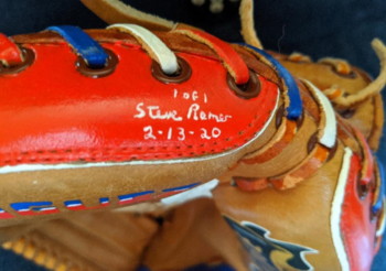 My signature and date this glove was completed. Also 1 of 1. This is a one of a kind item.