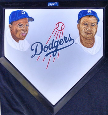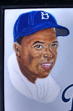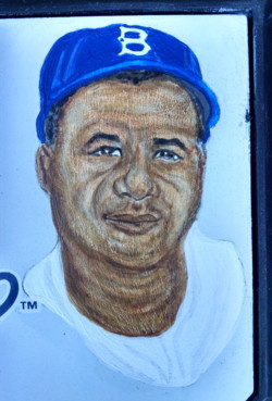 My hand painted portrait of Jackie Robinson on the left, my painting of Roy Campanella on the right.
