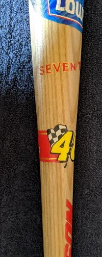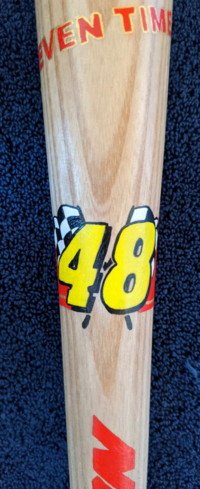 The "ring" around the bat has Johnson's number 48 with checkered flag.