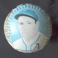 This Great American Jimmy Foxx Baseball features four of my original paintings of "Double X". A certificate of authenticity comes with your baseball so that you know it's an original Great American Baseball.This Baseball Is Available. Side one is my close up painting of Jimmy Foxx. Click here for a closer look