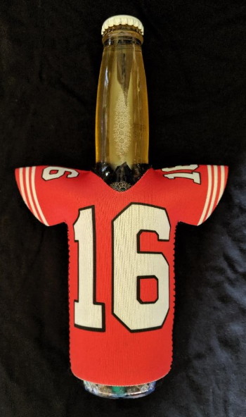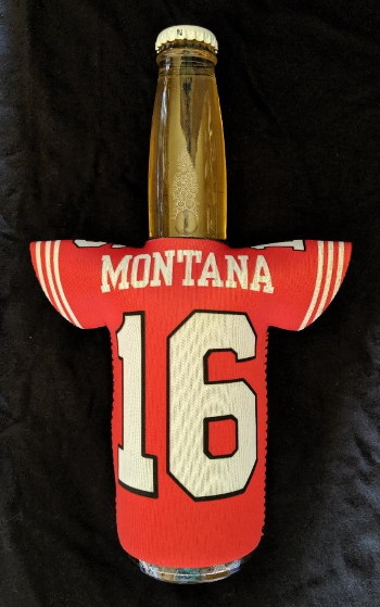 This Joe Montana jersey bottle koozie is designed with my original artwork.
