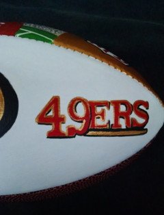 The bottom panel of the football has my hand painted San Francisco 49ers logo. Click here for a closer look.