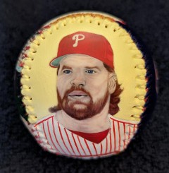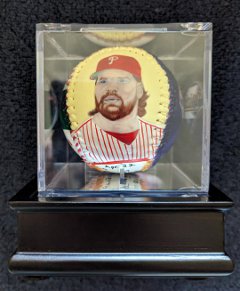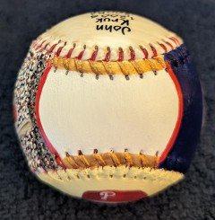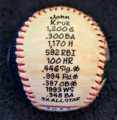 The front of the ball has my portrait of John Kruk. Click here for a closer look.