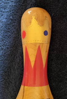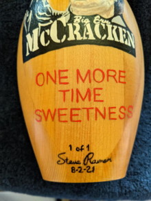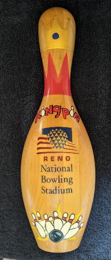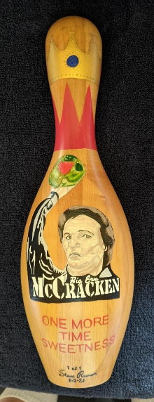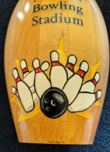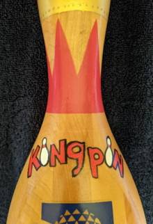 The front has my hand painted Kingpin and bowling pins and ball at the bottom. A gold crown with jewels surrounds the top.