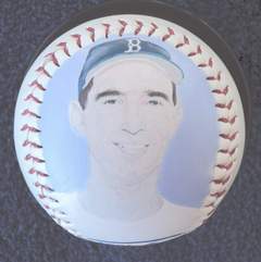 This Great American Sandy Koufax Baseball features my original painting of the Dodger's Hall of Famer. A certificate of authenticity comes with your baseball so that you know it's an original Great American Baseball.This Baseball Is Available The front has my close up painting of Sandy Koufax. Click here for a closer look