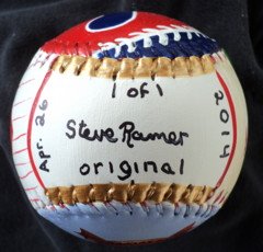 Side five, which is the top of the baseball, has been left blank for an autograph.
