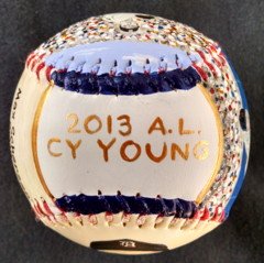 Side five, which is the top of the baseball, has my hand painted "2013 A.L. CY YOUNG".
