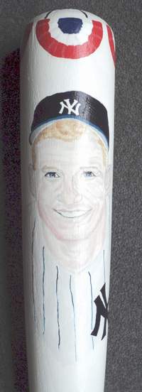 Side one has my close up painting of Mickey Mantle. Red, white and blue, flag style bunting surrounds the top of the bat.