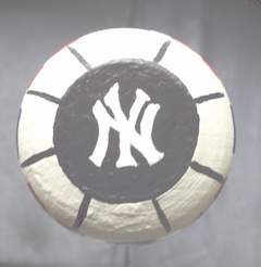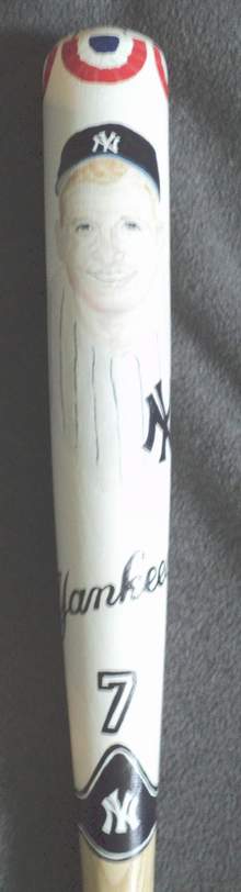 The top of the bat has my hand painted Yankees logo trimmed with Yankee pinstripes.