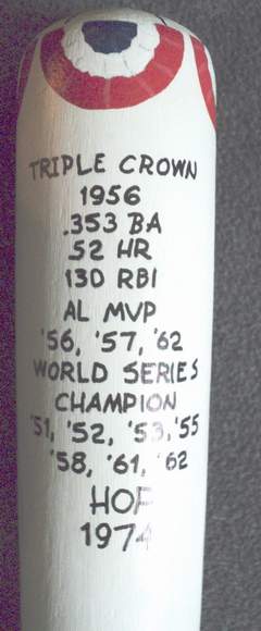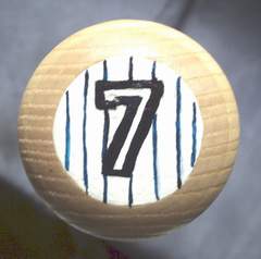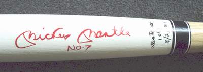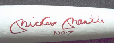 Also on the back of the bat is Mickey Mantle's hand painted autograph and "No. 7".
