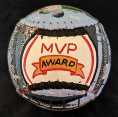 Side five, which is the top of the baseball, has has my hand painted "MVP Award".