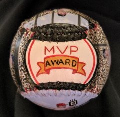 Side five, which is the top of the baseball, has has my hand painted "MVP Award".