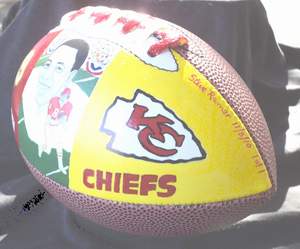This Legends Hand Painted Otis Taylor Mini Football features my original paintings of the Kansas City Chiefs Hall Of Famer.This Football Has Been Sold. Order A Similar Football Below. The center of this nine inch long football has my two paintings of Otis Taylor with the Kansas City crowd in the background. Click here for a closer look.