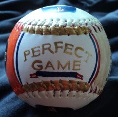 Side five, which is the top of the baseball, has my hand painted "Perfect Game".