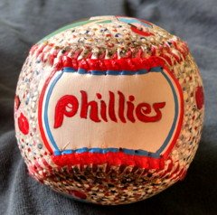 Side five, which is the top of the baseball, has my hand painted "PHILLIES".
