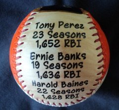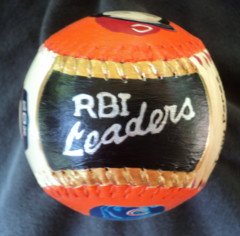 Side five, which is the top of the baseball, has my hand painted "RBI Leaders".