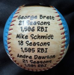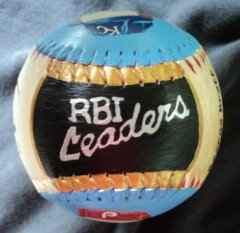 Side five, which is the top of the baseball, has my hand painted "RBI Leaders".