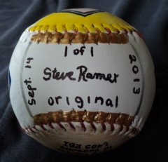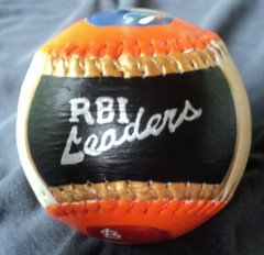Side five, which is the top of the baseball, has my hand painted "RBI Leaders".