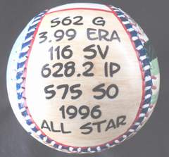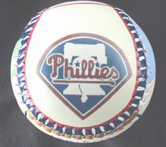This Great American Ricky Bottalico Baseball features my two original paintings of Phillies second baseman. A certificate of authenticity comes with your baseball so that you know it's an original Great American Baseball.This Baseball Is Available The front of the ball has my close up painting of Ricky Bottalico. Click here for a closer look