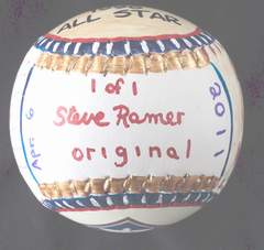 Side six, which is the bottom of the baseball, has my signature along with the date that this Great American Baseball was completed and trimmed with gold. Also you will see "1 of 1". This means that this is number one of only one created. This is a one of a kind piece of art. There will never be another exactly like it.