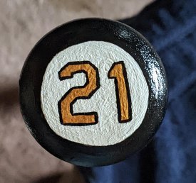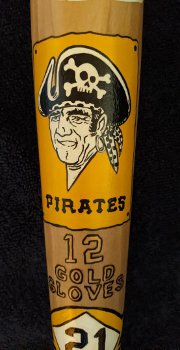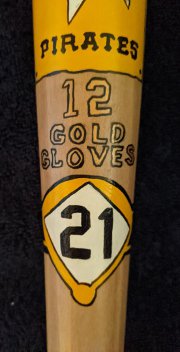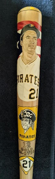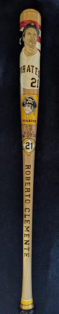 The front of the bat has my hand painted portrait of Roberto Clemente in his 1960's uniform with the flag of Puerto Rico behind him.Click here for a closer look.