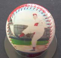 This Legends Hand Painted Robin Roberts Baseball has two of my original paintings of the Phillies' Hall of Famer.This Baseball Has Been Sold Side one is Robin Roberts up close.