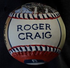 Side five, which is the top of the baseball, has "Roger Craig" hand painted in team colors.
